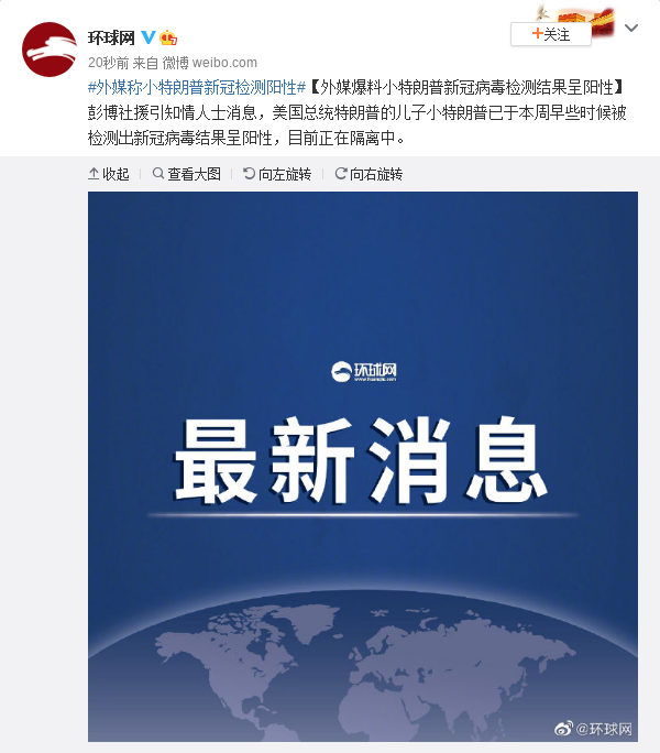 小特朗普被检测出新冠病毒结果呈阳性