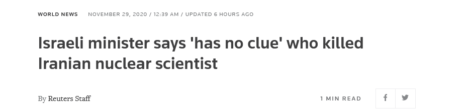 暗杀事件发生后,伊朗外交部长扎里夫几乎是在第一时间指责以色列特工组织“摩萨德”策划并实施了暗杀行动,伊朗军政高层随后也纷纷发声。伊朗最高领袖哈梅内伊慰问信要求对事件进行彻查并对肇事者和幕后指挥者予以严惩。总统鲁哈尼则表示,伊朗国防部将继续加大投入,通过有效部署来填补法克里扎德去世留下的空白。伊朗伊斯兰革命卫队总司令侯赛因·萨拉米在社交媒体上发文称,革命卫队已经将对肇事者的严厉报复提上日程。