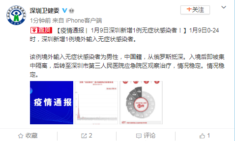 1月9日0-24时,深圳新增1例境外输入无症状感染者。